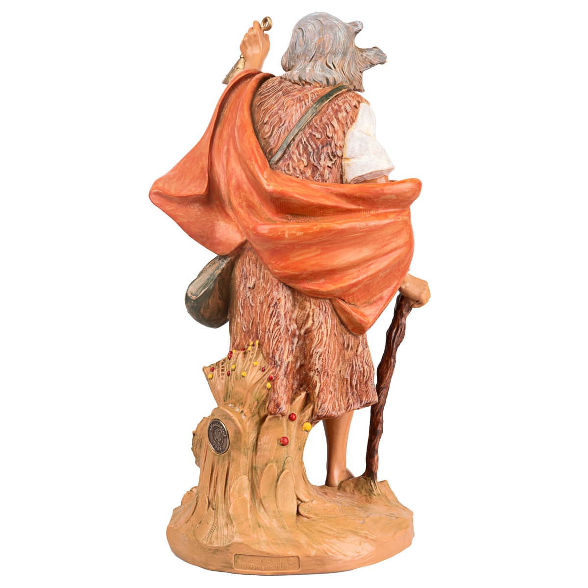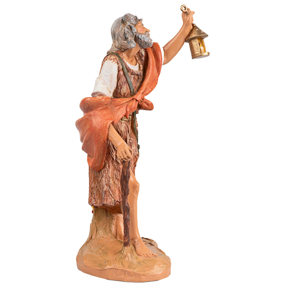 Viejo con linterna y bastón 30 cm Fontanini pintado a mano y adecuado también para exteriores. Estatua del belén tradicional Fontanini con rostro expresivo y bien detallada.