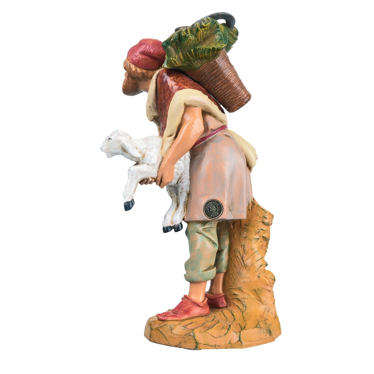 Pastor con mochila y oveja en brazos 30 cm Fontanini pintado a mano y adecuado también para exteriores. Estatua del belén tradicional Fontanini con rostro expresivo y bien acabada en los detalles.