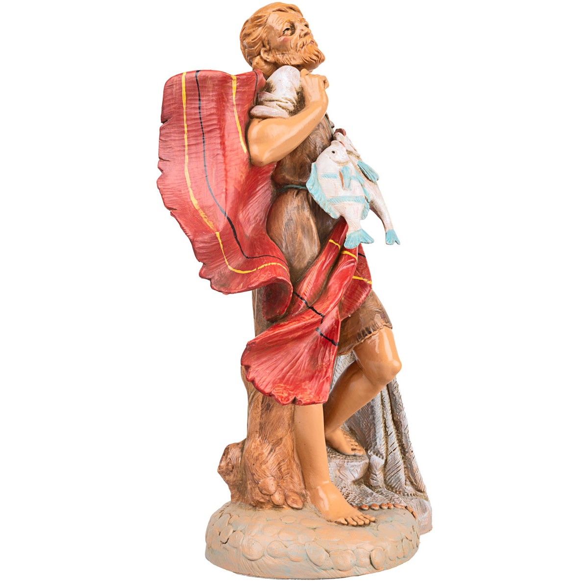 Pescador con peces y red de 30 cm Fontanini, pintado a mano y adecuado también para ambientes exteriores. Estatua del pesebre tradicional Fontanini con rostro expresivo y bien acabada en los detalles.