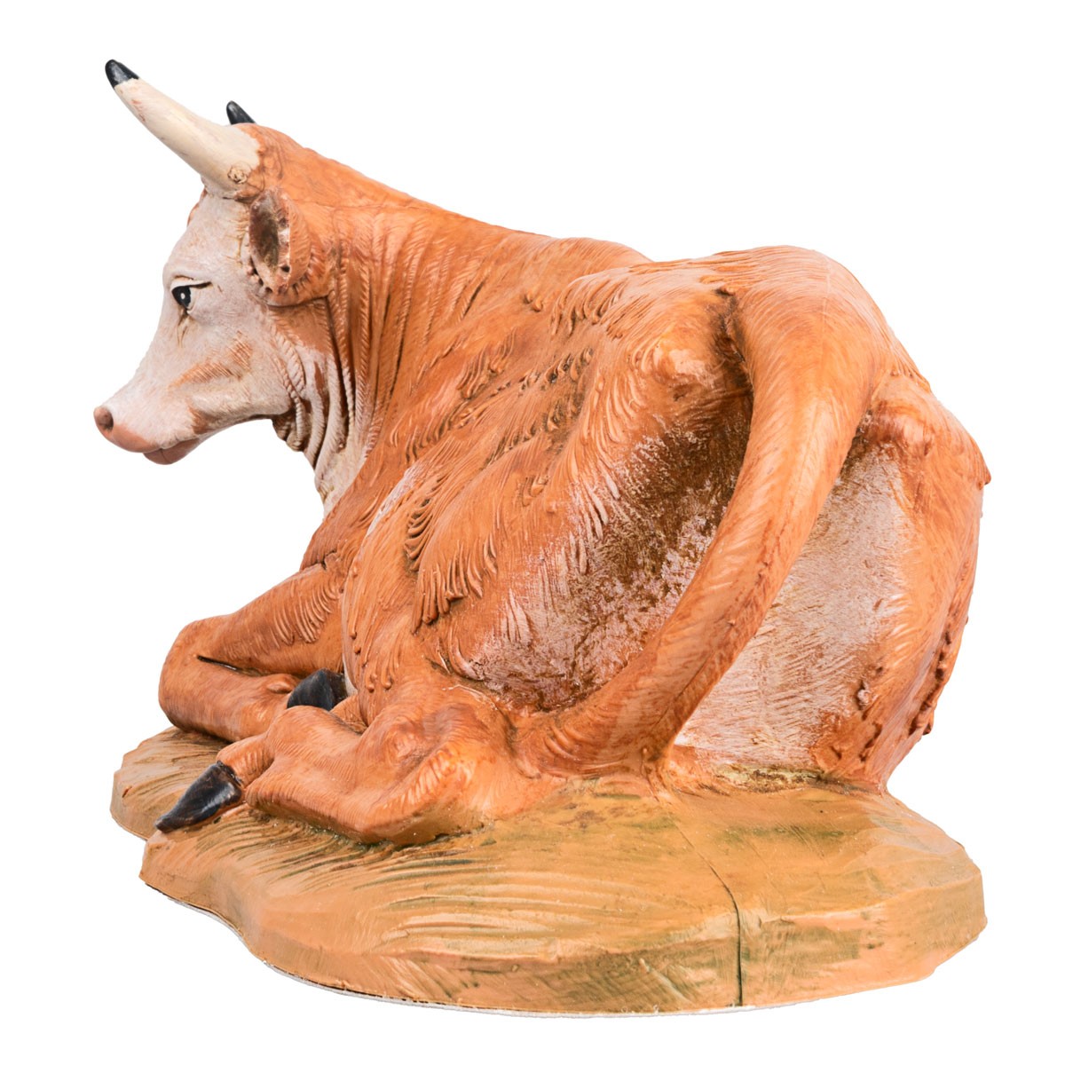 Bue sentado serie 30 cm Fontanini, pintado a mano y también apto para exteriores. Estatua del pesebre tradicional Fontanini con rostro expresivo y bien acabada en los detalles.