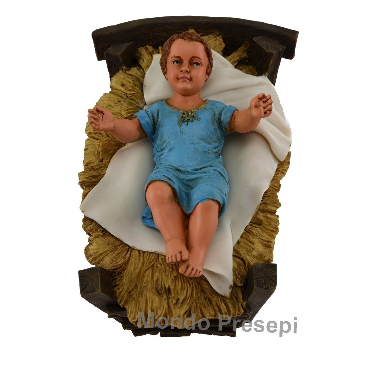 Cuna con Jesús niño en resina pintada a mano de la serie Pigini para estatuas de altura 30 cm.