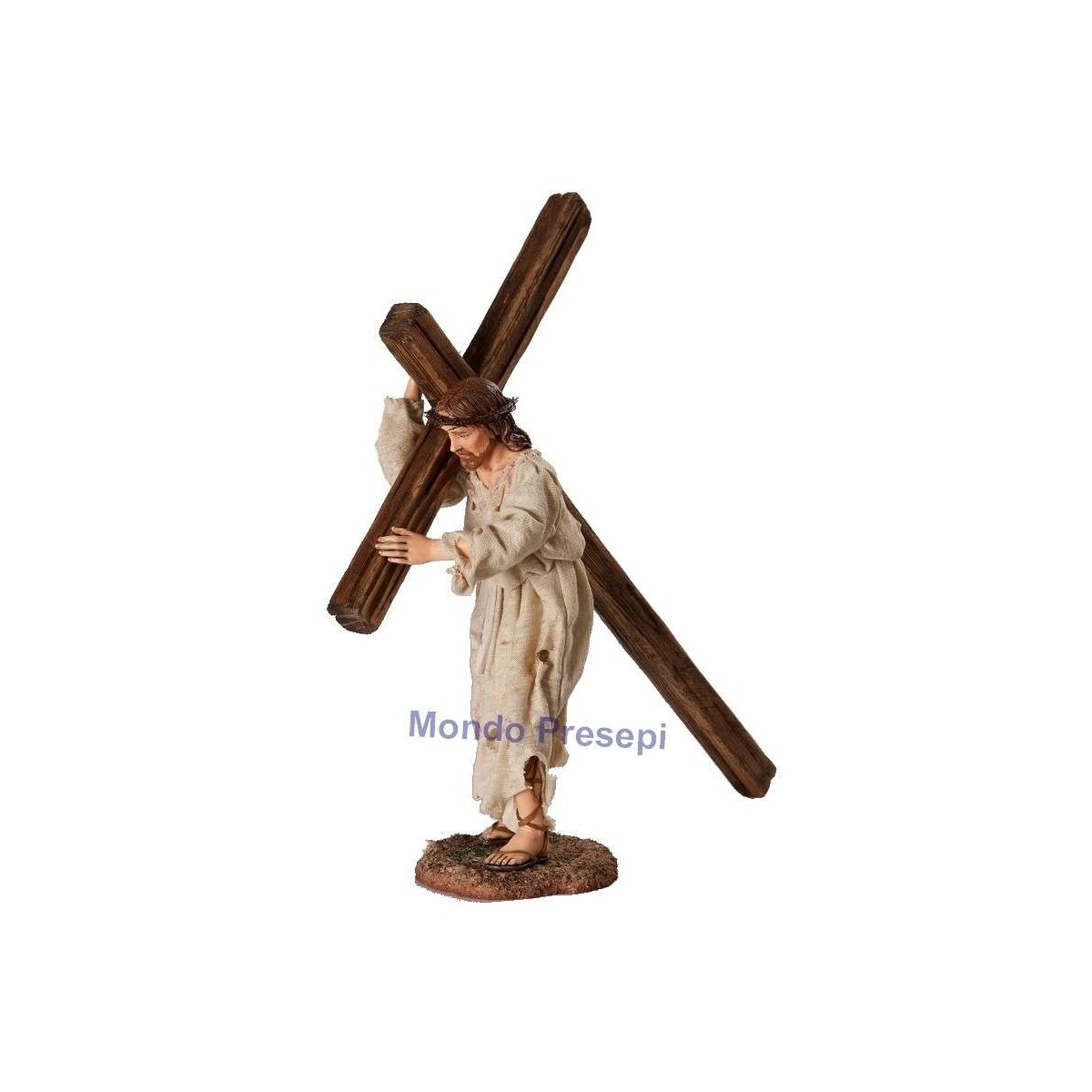 Jesús en el calvario cm 30, estatua artística de resina revestida con telas.
