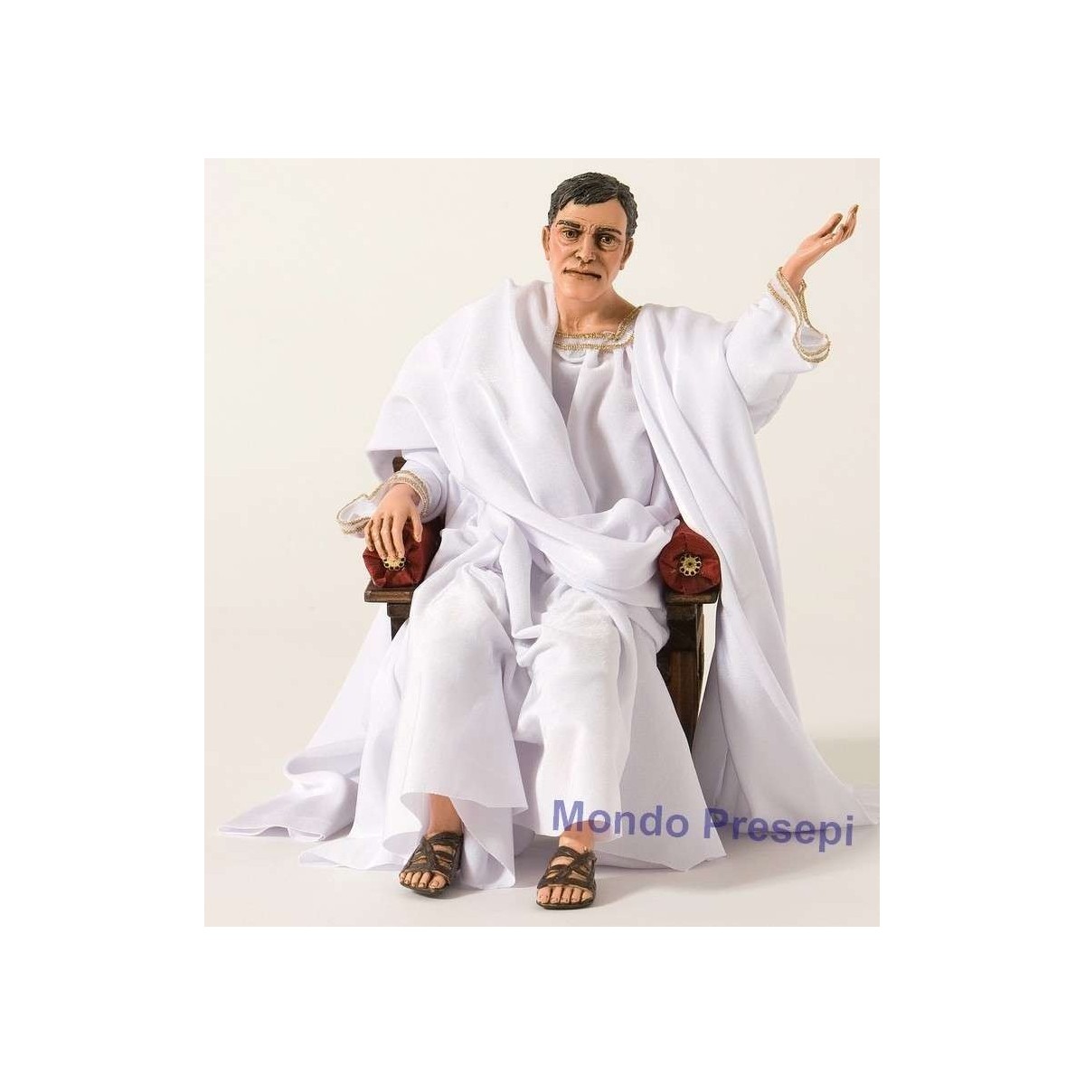 Pilato con trono cm 30, estatua artística de resina revestida con telas.