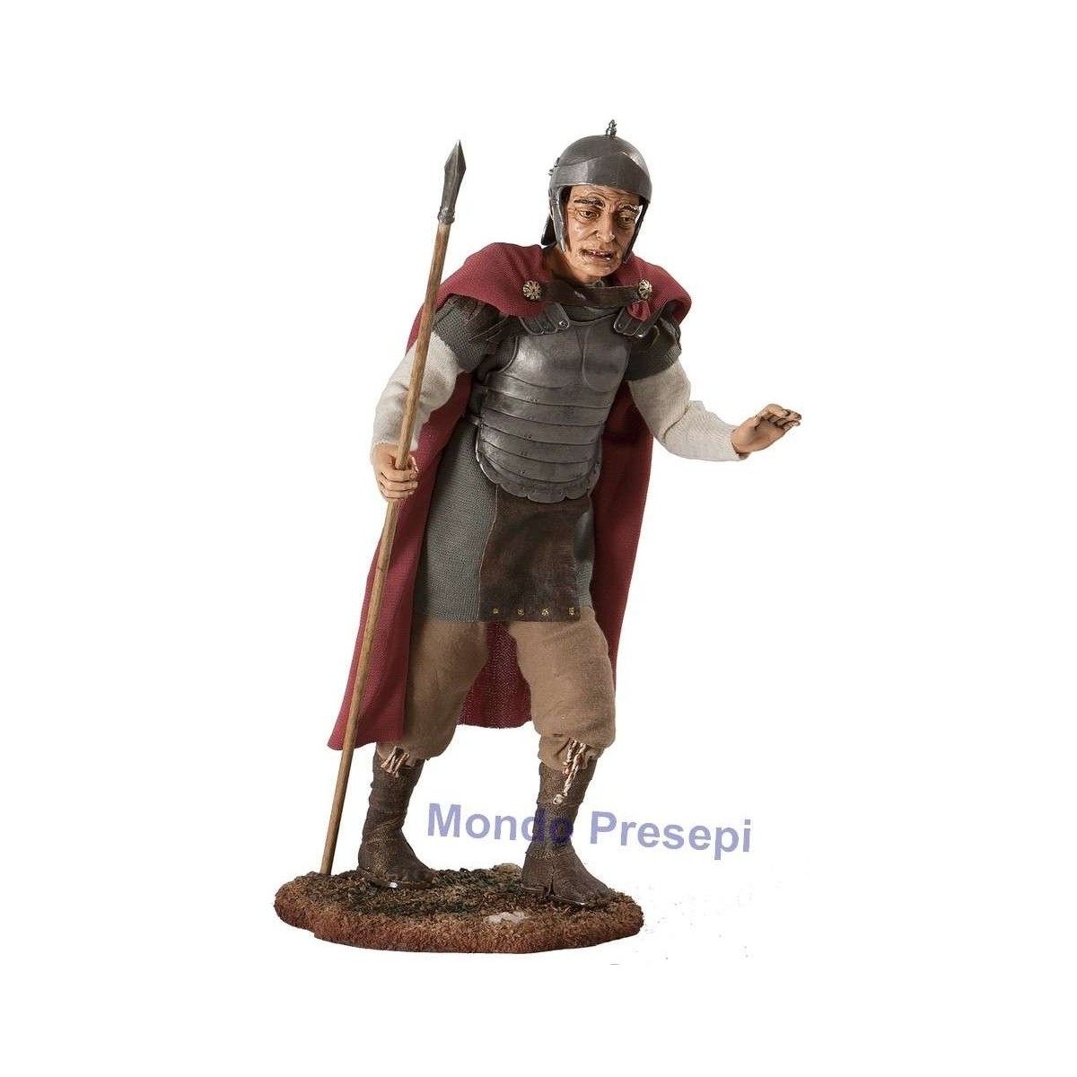 Soldado con lanza de 30 cm, estatua artística de resina revestida con telas.