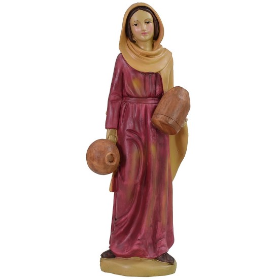 Mujer palestina en resina serie 40 cm con dos ánforas, estatua bien acabada con un largo tocado.