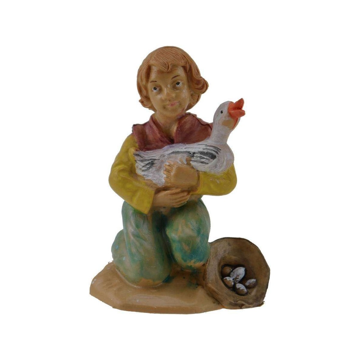 Pastor de rodillas con oca, serie 6 cm en pvc lux.