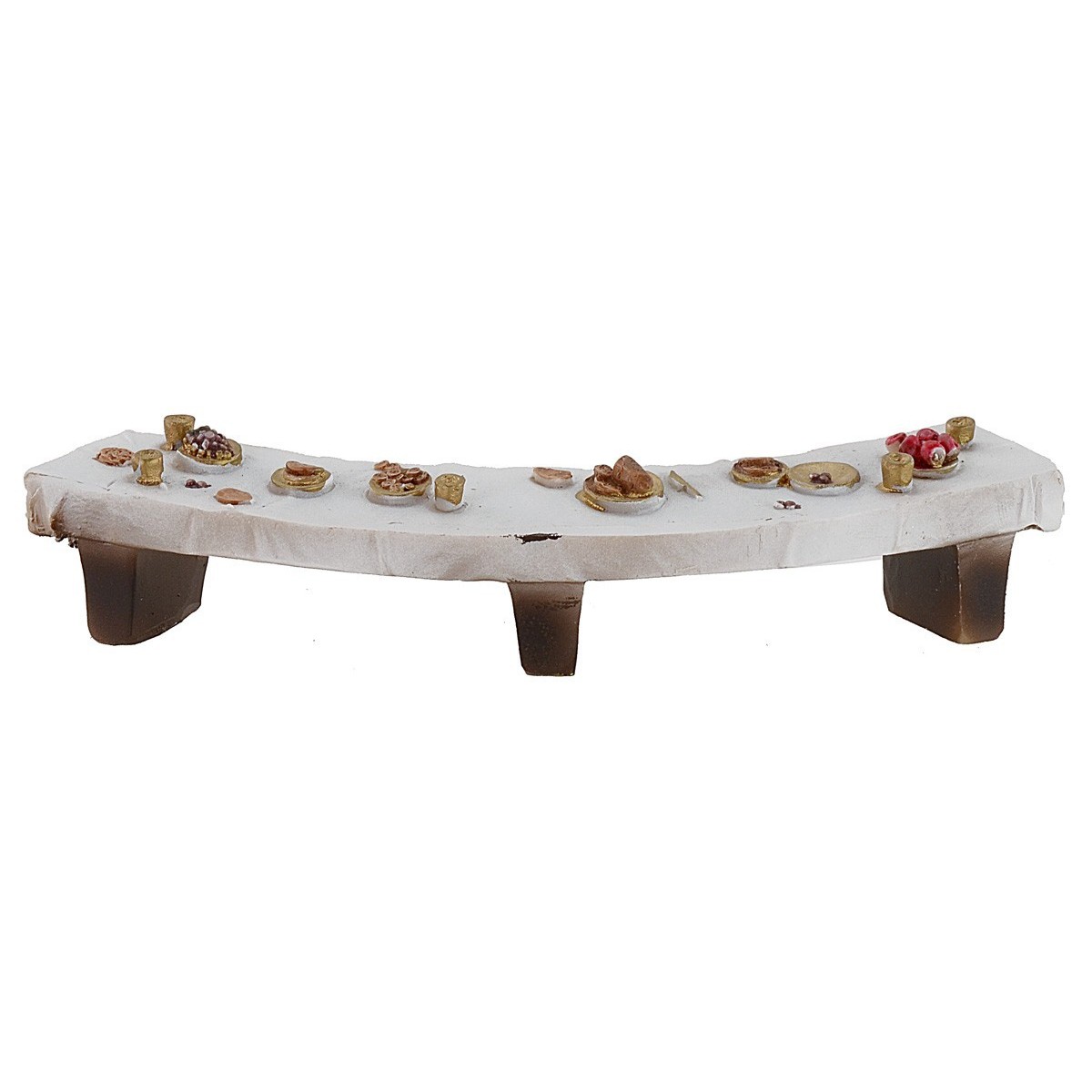 Conjunto de 13 estatuas de Pascua para la representación de la Última Cena. Podemos distinguir a Jesús, en el centro de la mesa, de los 12 Apóstoles a su lado. En esta escenografía, Jesús tuvo su última cena en el lugar llamado el "Cenáculo" durante la Pascua judía, antes de su muerte. La mesa de la escena también está hecha de resina y es muy característica por las miniaturas que la llenan y decoran. Las estatuas de la misma serie tienen rostros expresivos y bien detallados y están hechas completamente de resina. El producto es ideal para la creación de composiciones de Pascua como Dioramas y Pesebres.