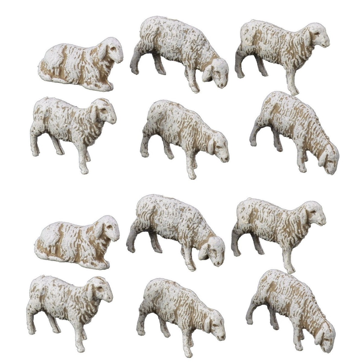 Conjunto de 12 ovejitas bien acabadas de Landi Moranduzzo para figuras de la serie de 6 cm. Recordamos que la serie de figuras Landi Moranduzzo de 6 cm mide realmente alrededor de 5,5 cm.