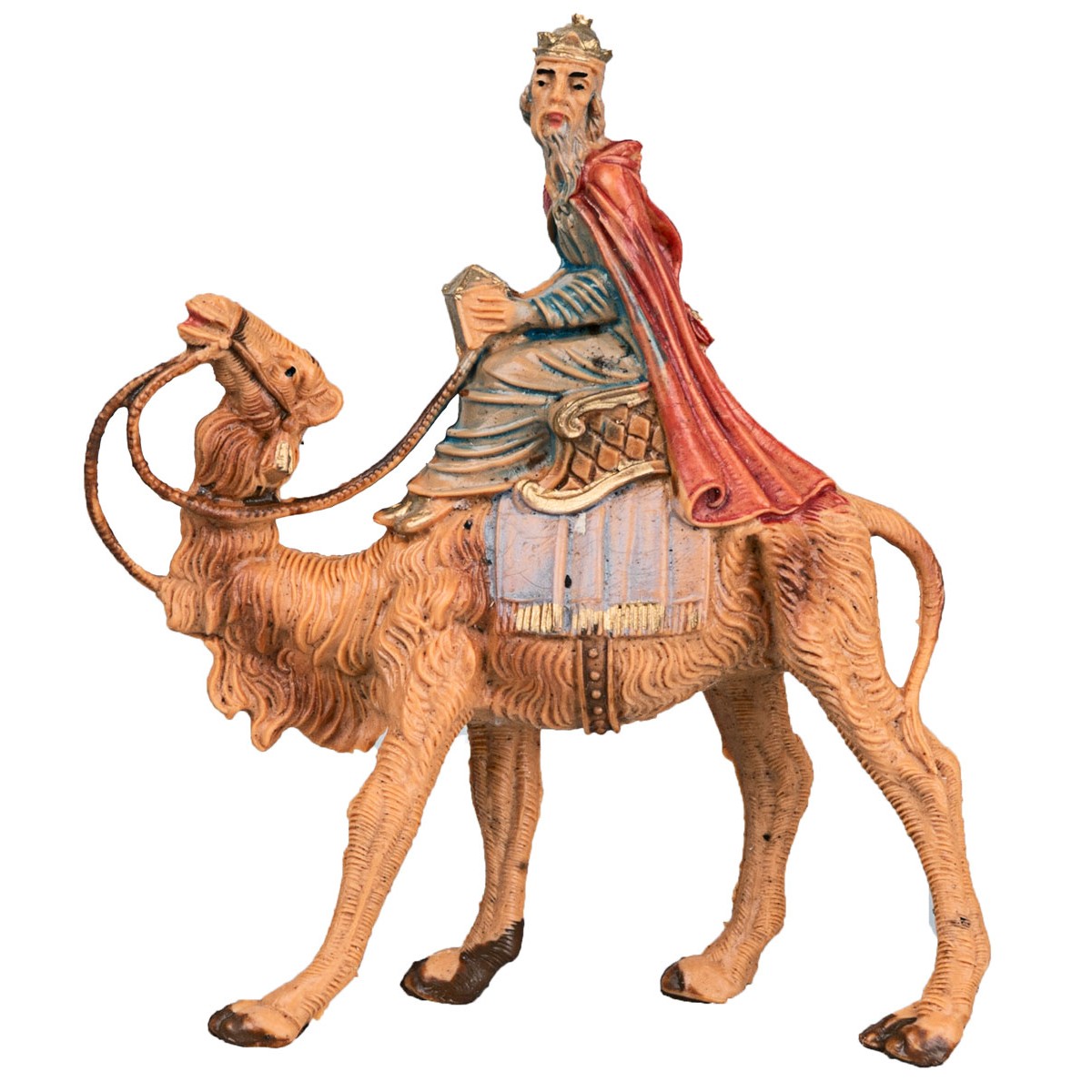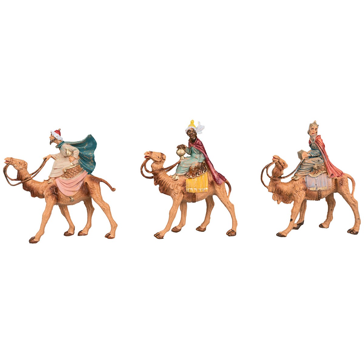 Set de 3 Reyes Magos en camello, serie 6,5 cm Fontanini, pintados a mano. Las estatuas del pesebre tradicional Fontanini tienen rostros expresivos y bien detallados.