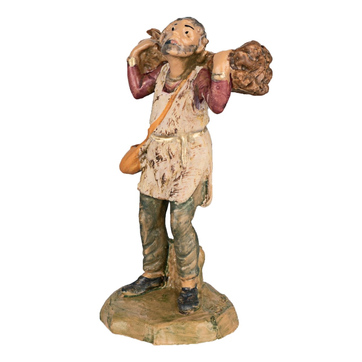 Campesino con leña sobre los hombros serie 6,5 cm Fontanini. Las estatuas del pesebre tradicional Fontanini se producen y pintan a mano en Italia, tienen rostros expresivos y detalles bien acabados.