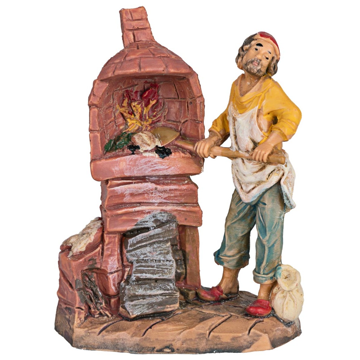 Panadero con horno y leña 6,5 cm Fontanini pintado a mano. Las estatuas del pesebre tradicional Fontanini tienen rostros expresivos y bien detallados.