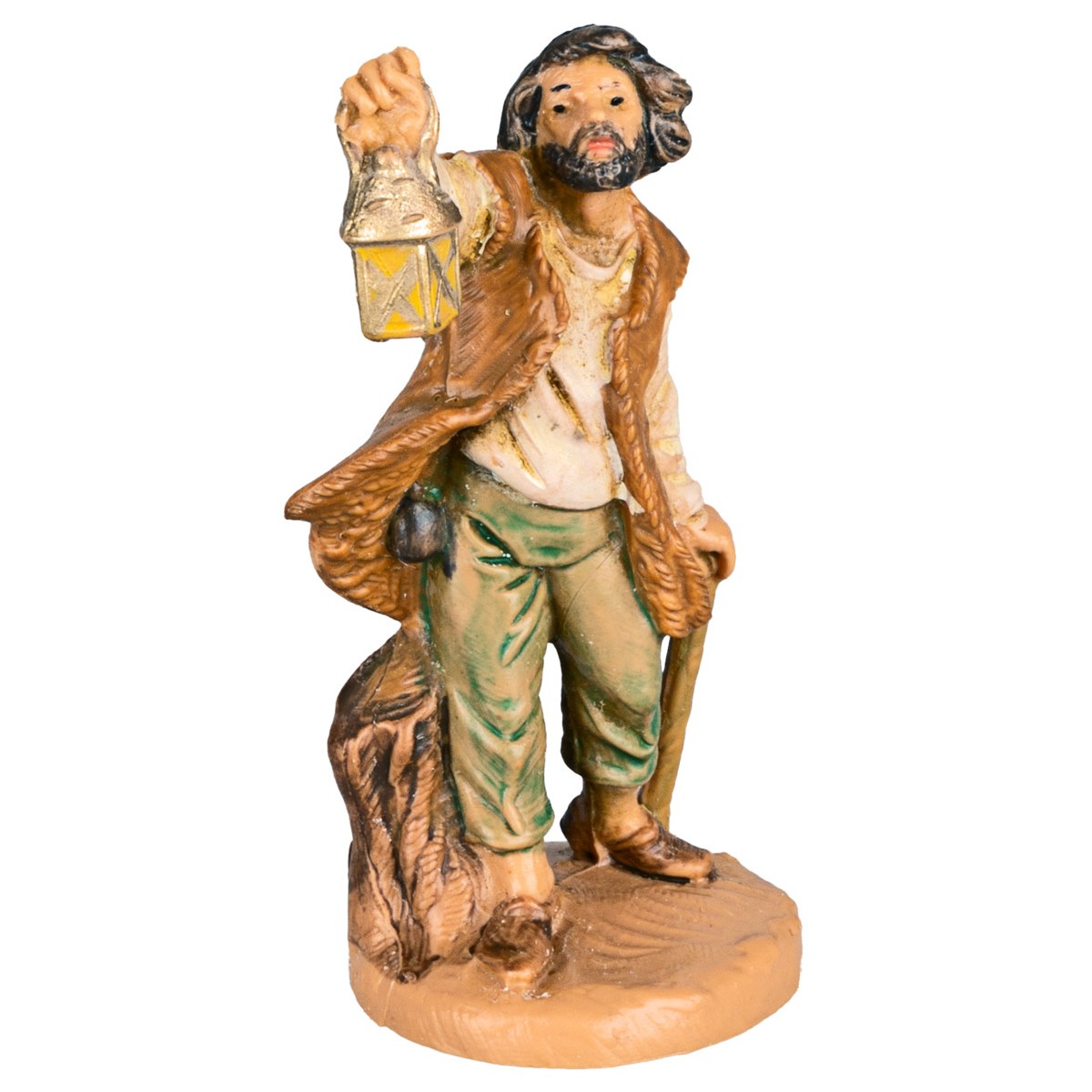 Hombre con linterna y bastón 6,5 cm Fontanini pintado a mano. Las estatuas del belén tradicional Fontanini tienen rostros expresivos y bien acabados en los detalles.