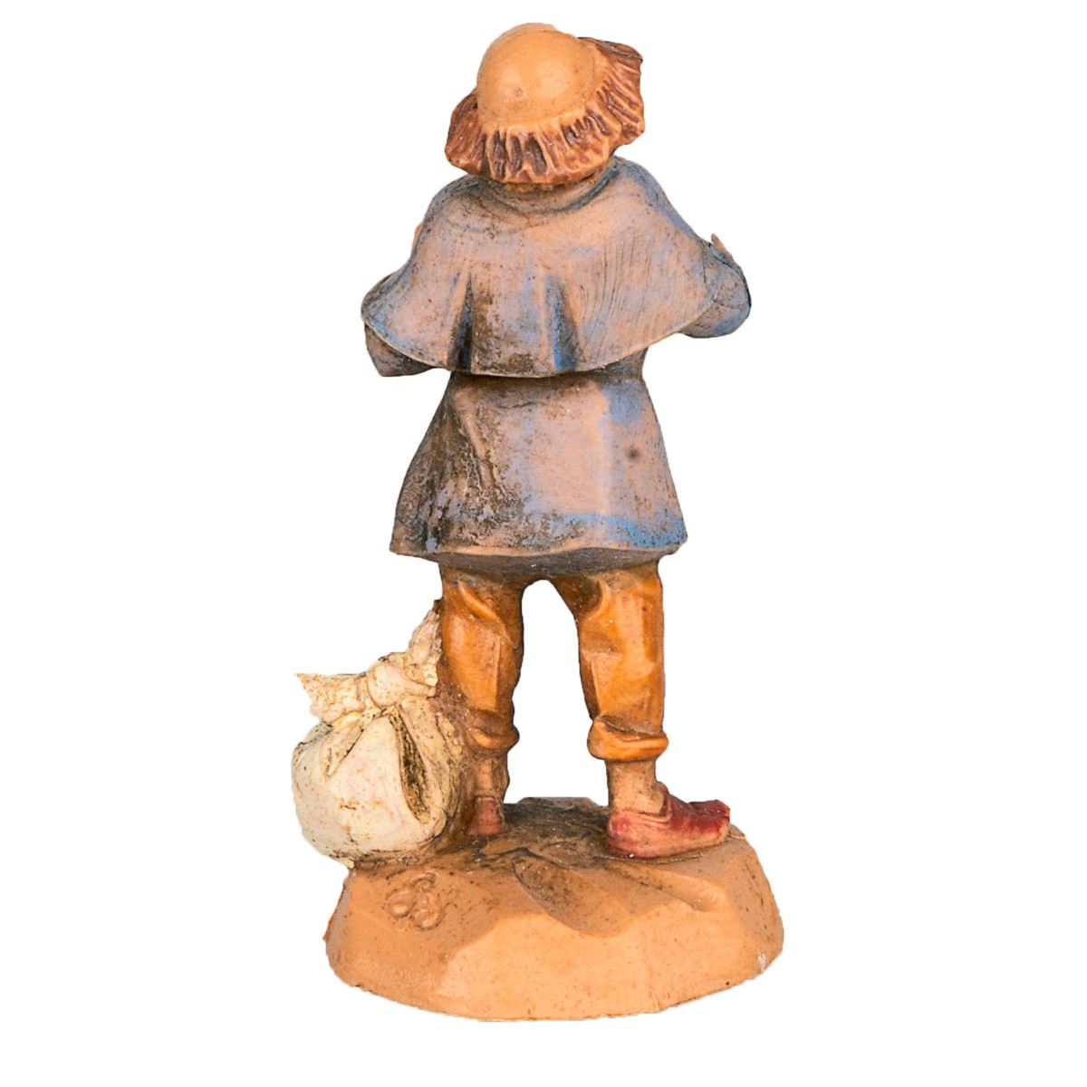 Hombre con sombrero 6,5 cm Fontanini, estatua pintada a mano. Las estatuas del pesebre tradicional Fontanini tienen rostros expresivos y bien acabados en los detalles.