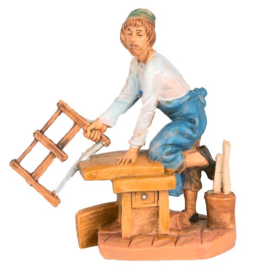 Carpintero 6,5 cm Fontanini, estatua pintada a mano. Las estatuas del pesebre tradicional Fontanini tienen rostros expresivos y bien acabados en los detalles.