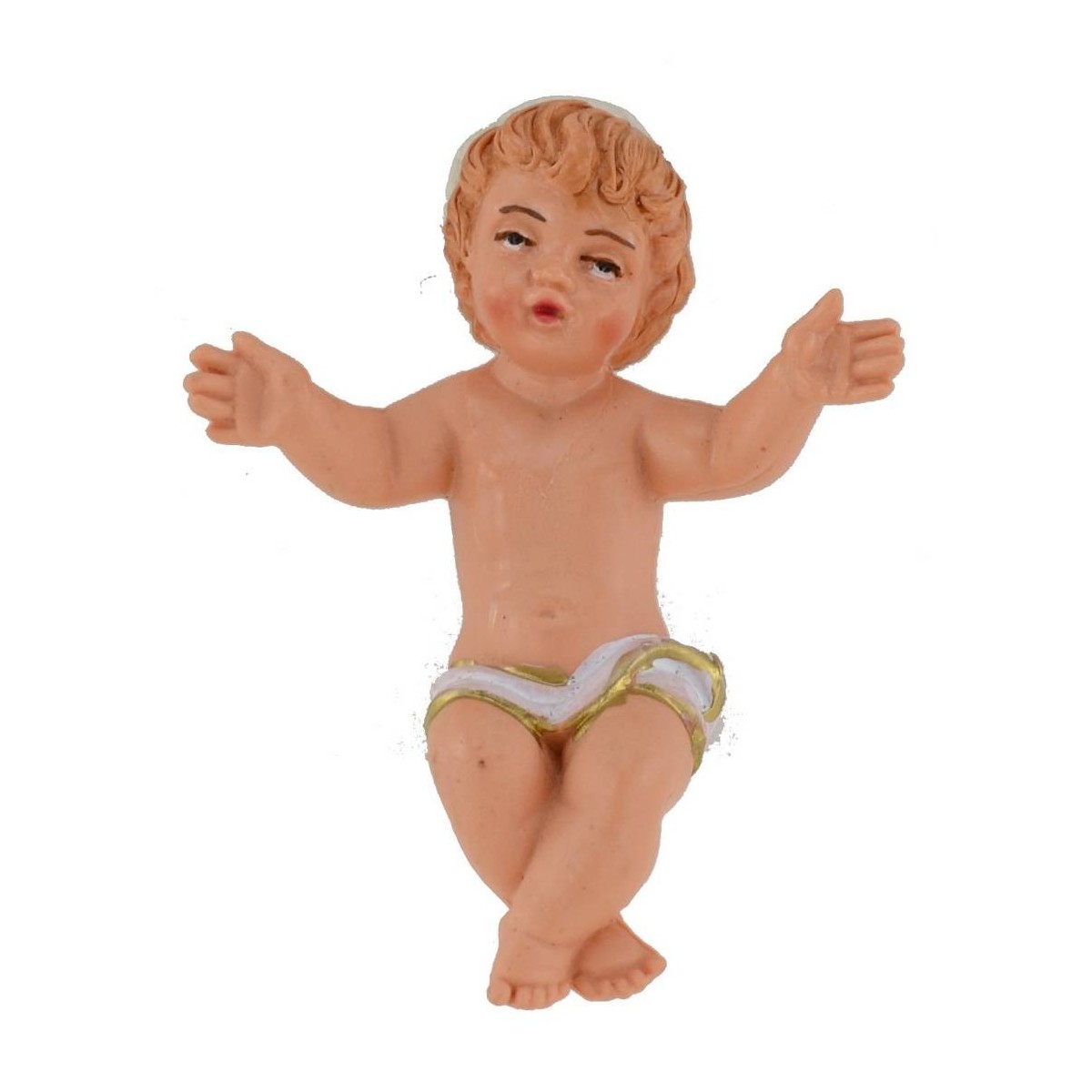 Niño Jesús en PVC, los brazos están extendidos hacia adelante y está cubierto por un manto. Este Niño puede combinarse con estatuas de altura de 20-24 cm.