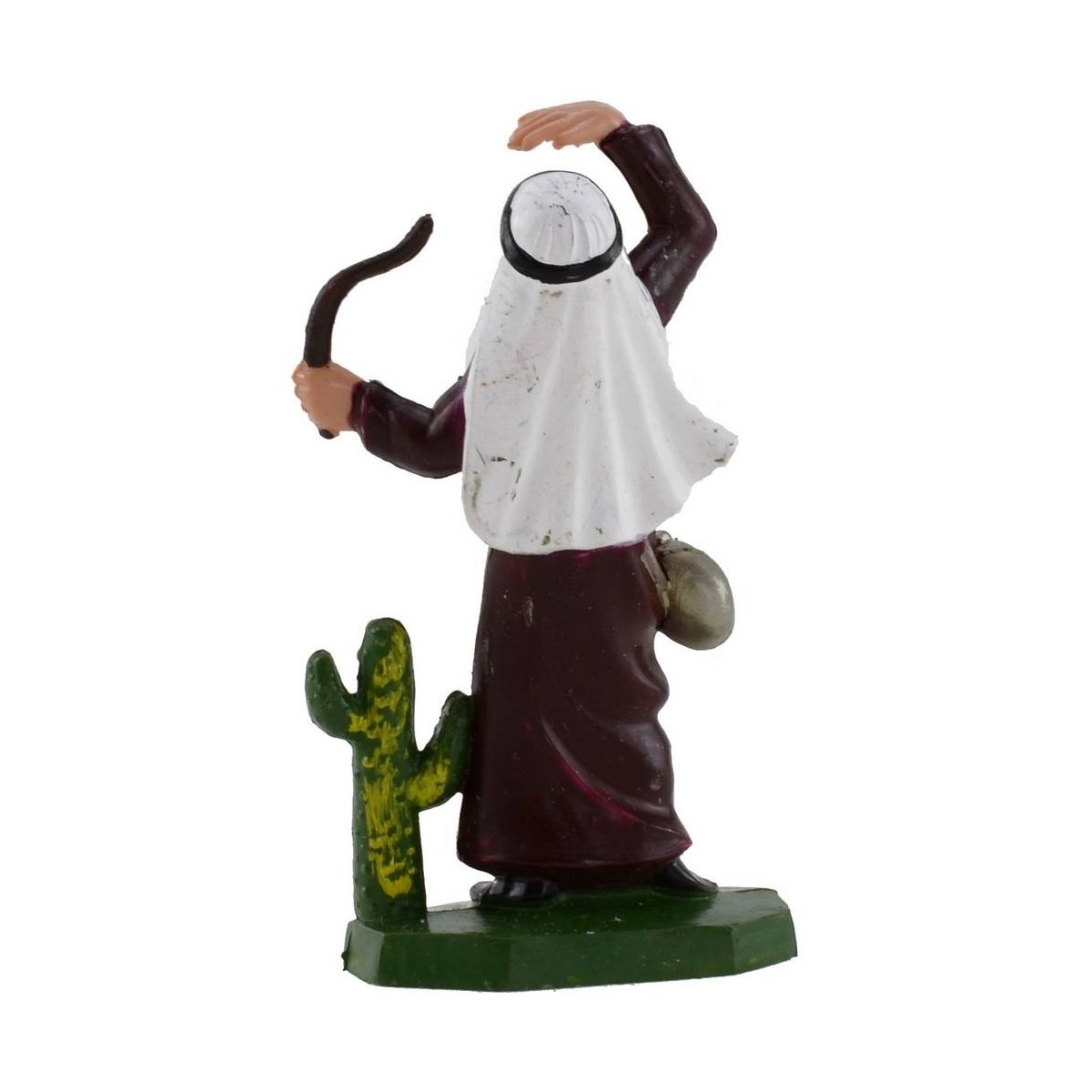 Oriental con cantimplora de bandolera y cactus de 8 cm, estatua para belén en PVC.