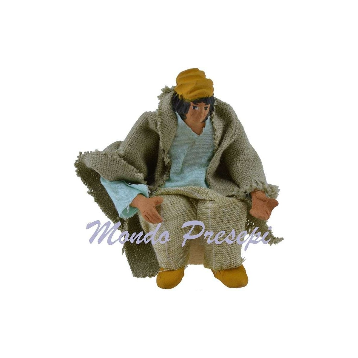 Hombre de terracota vestido en tela serie 12 cm. Ideal para realizar movimientos ya que el torso y los brazos de las estatuas son articulados, o para colocar en el pesebre como personaje fijo dándole la posición deseada.