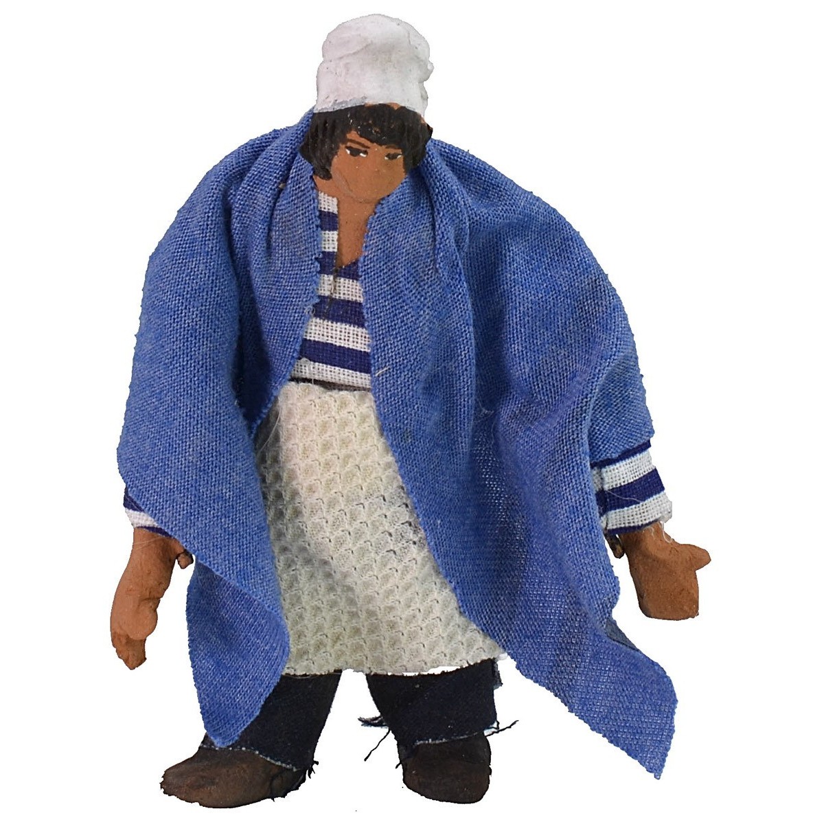 Hombre articulado de terracota de 10 cm vestido con tela. La estatua es articulada y puede colocarse en la posición deseada, está hecha a mano completamente en terracota, por lo tanto, los colores pueden variar ligeramente con respecto a la foto.