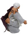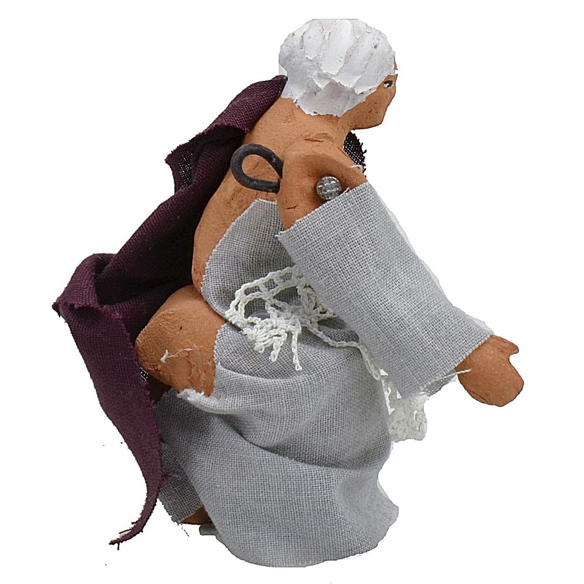 Mujer de terracota articulada serie 10 cm vestida con ropa de tela. La estatua está en posición sentada con un brazo preparado para el movimiento arriba/abajo y el torso articulado, puede ser utilizada fija y colocada en la posición deseada. Dadas sus características, es ideal para la realización de movimientos para el belén hecho a mano como: la mujer que hila, borda, come, etc. El artículo está completamente hecho a mano, por lo tanto, los colores pueden variar respecto a la foto.