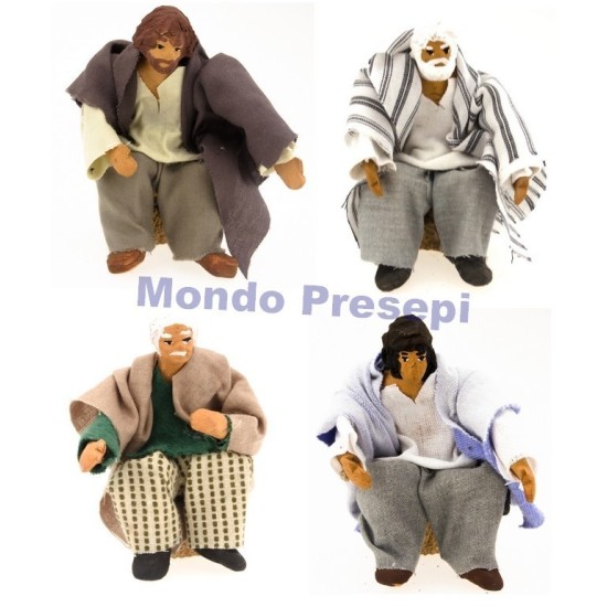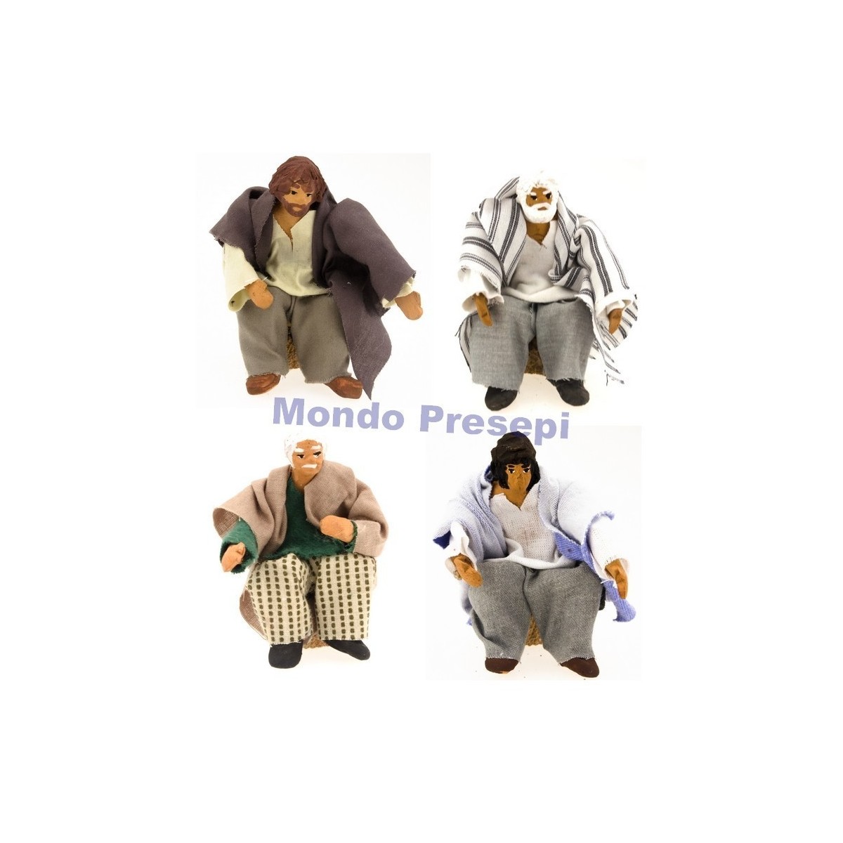 Hombre articulado de terracota serie 10 cm vestido con ropa de tela. La estatua está en posición sentada con un brazo predispuesto al movimiento arriba/abajo y el torso articulado, puede ser utilizada fija y colocada en la posición deseada. Dadas sus características, resulta ideal para la realización de movimientos para el belén de bricolaje como: el alfarero que trabaja la arcilla, el zapatero, el calderero, el borracho y muchos otros personajes. El artículo está completamente hecho a mano, por lo tanto, los colores pueden variar respecto a la foto.