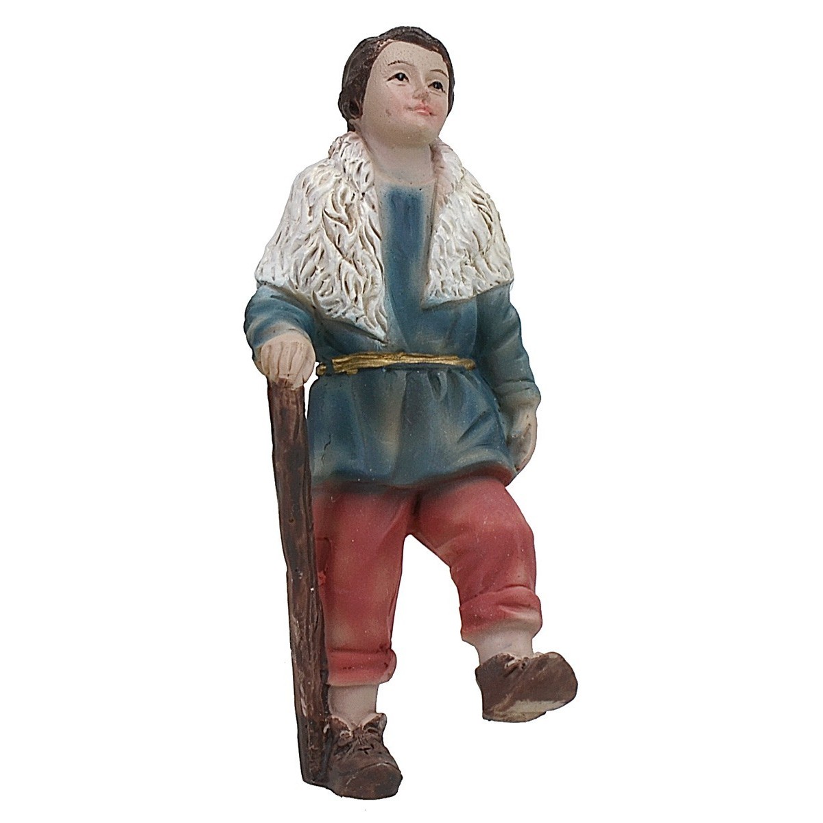 Hombre con bastón subiendo las escaleras, la figurita de resina está bien detallada.