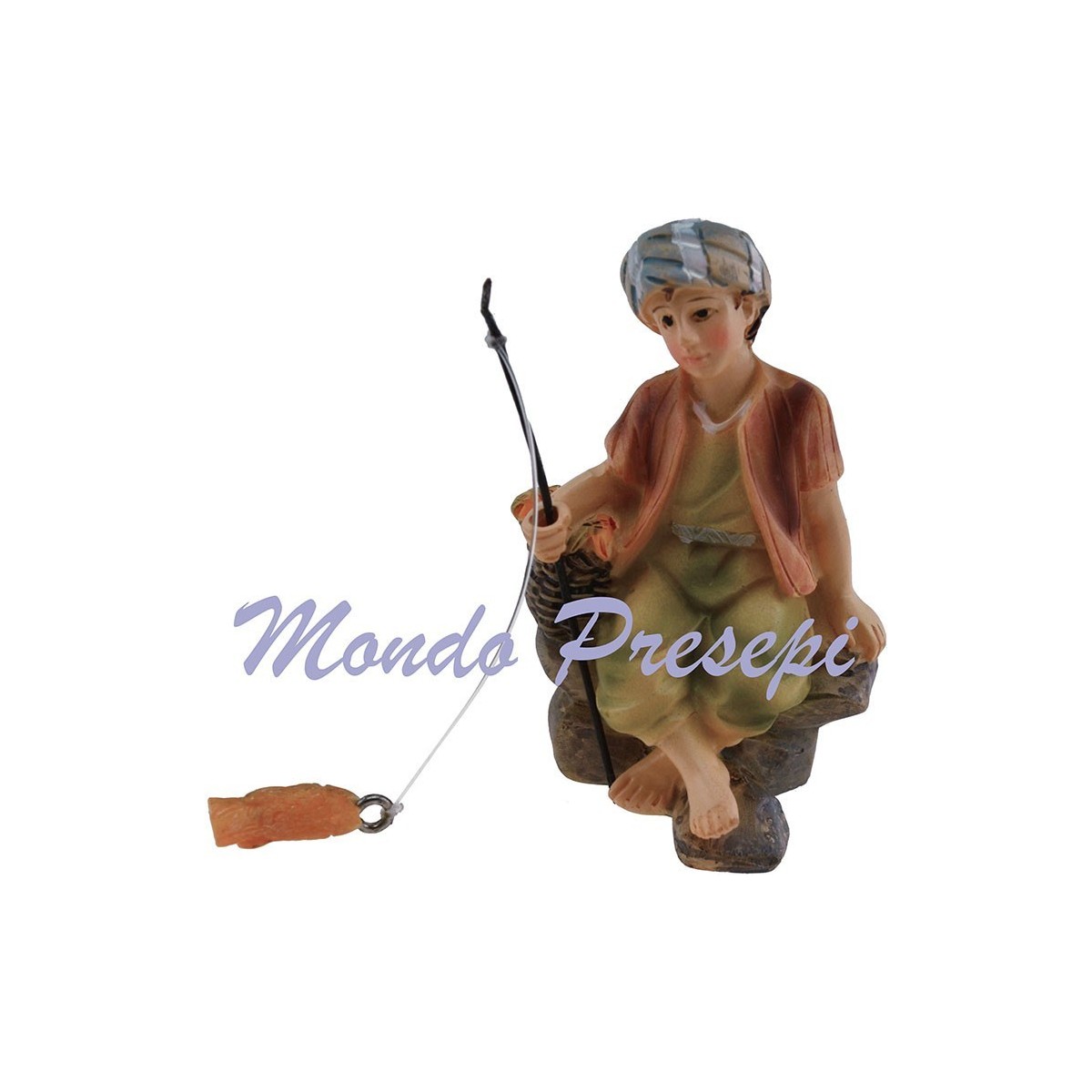 Pescador con caña y pez en resina serie cm 9.
