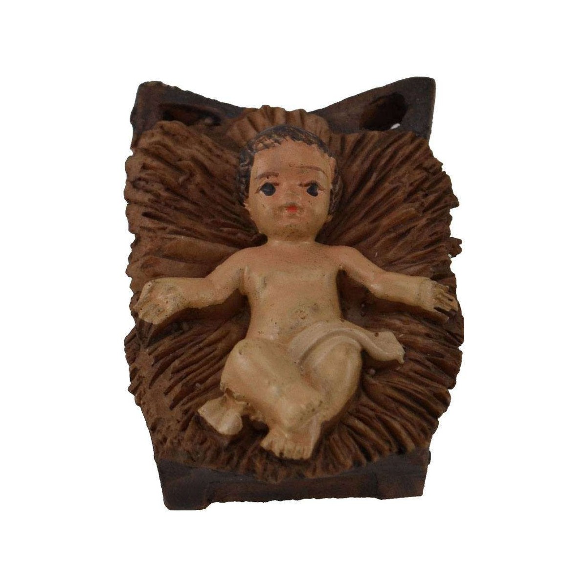 Natividad en resina set de 5 figuras: San José, María, Niño en la cuna, buey y asno.