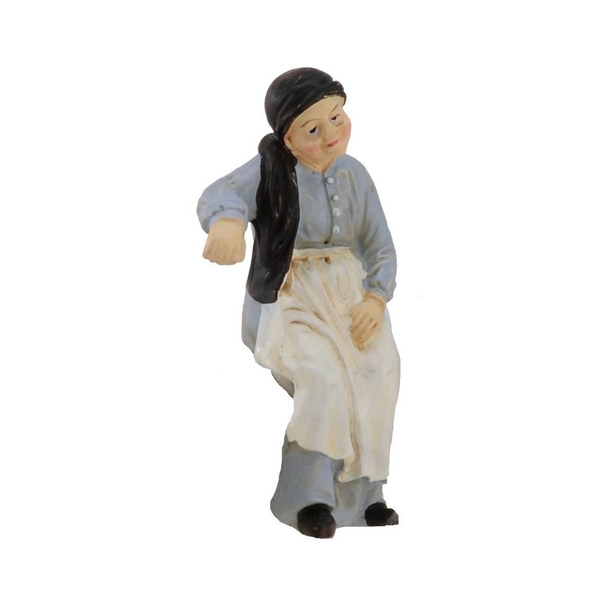 Mujer anciana en posición sentada serie 10 cm en resina, para combinar con un apoyo como silla, taburete o banco con altura de asiento 3 cm.
