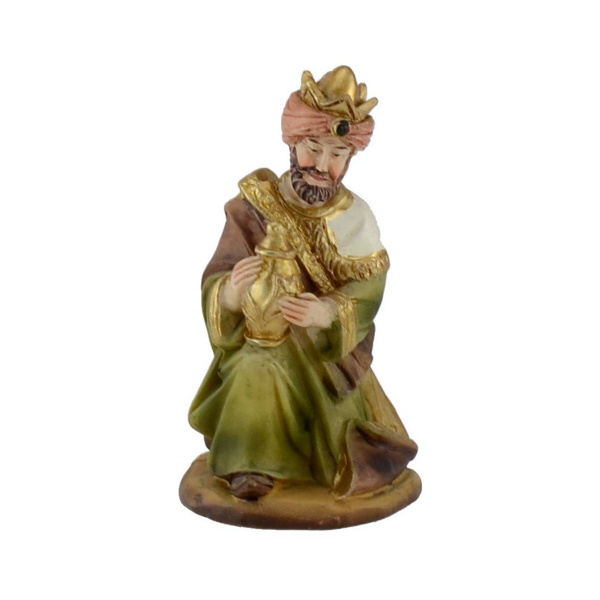 Juego de 11 figuras de 9 cm de altura en resina para belén compuesto por la Natividad (San José, María, Jesús, buey y asno), los Tres Reyes Magos, el ángel, pastor y oveja.