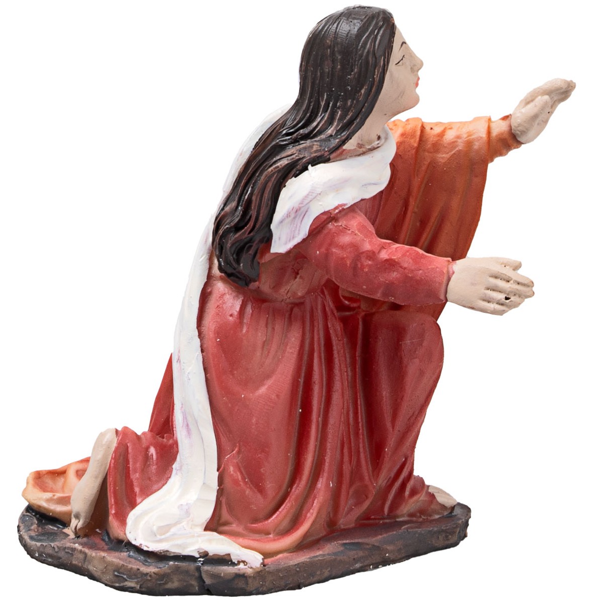 Figuras pintadas a mano, cuidadas en los detalles, ideales para belenes pascuales y dioramas sagrados.