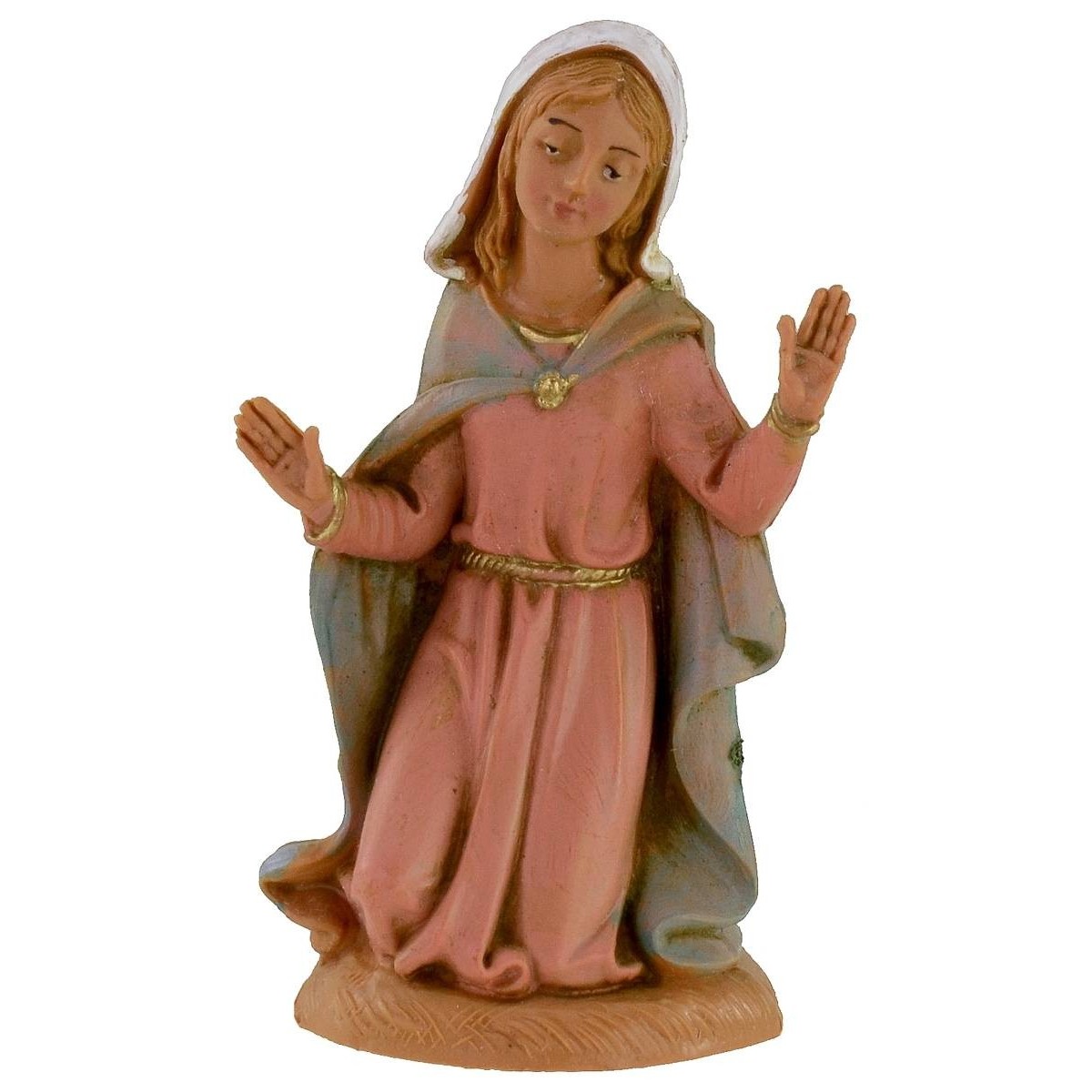 Set de Natividad de 5 piezas de Fontanini, altura 10 cm, compuesto por: San José, María, Cuna con niño separado, buey y asno. Las estatuas del pesebre tradicional Fontanini tienen rostros expresivos y bien detallados.