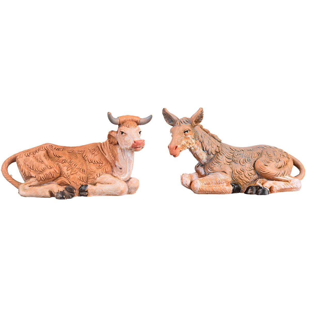 Conjunto de natividad de 5 piezas de Fontanini, altura 9,5 cm, compuesto por: San José, María, cuna con niño separado, buey y burro.
