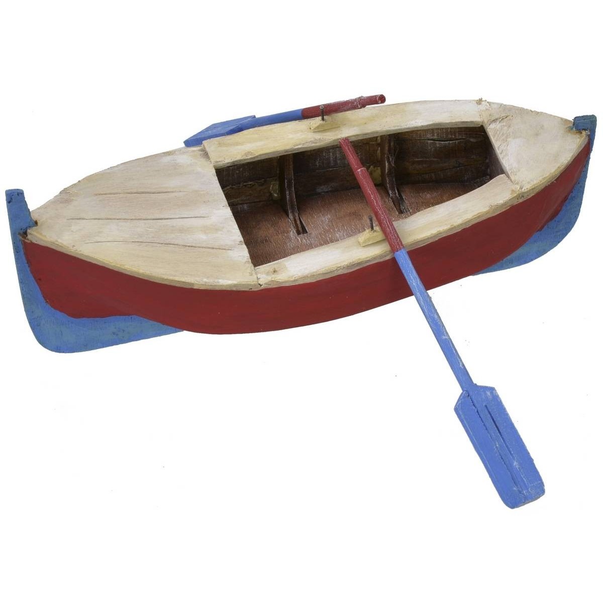 Barca de madera pintada a mano con remos removibles, para crear un belén DIY. Producto artesanalmente creado en Italia por hábiles manos artesanas utilizando madera. Se recomienda combinar el producto con estatuas de altura 12 h cm.