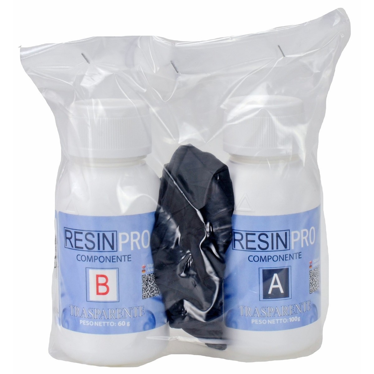 disponible en dos formatos de 160 y 320 gr (es posible seleccionar el paquete haciendo clic en el menú desplegable presente en el botón "añadir al carrito"). En los productos relacionados situados debajo de la descripción están disponibles los colorantes que se pueden añadir a la resina transparente.