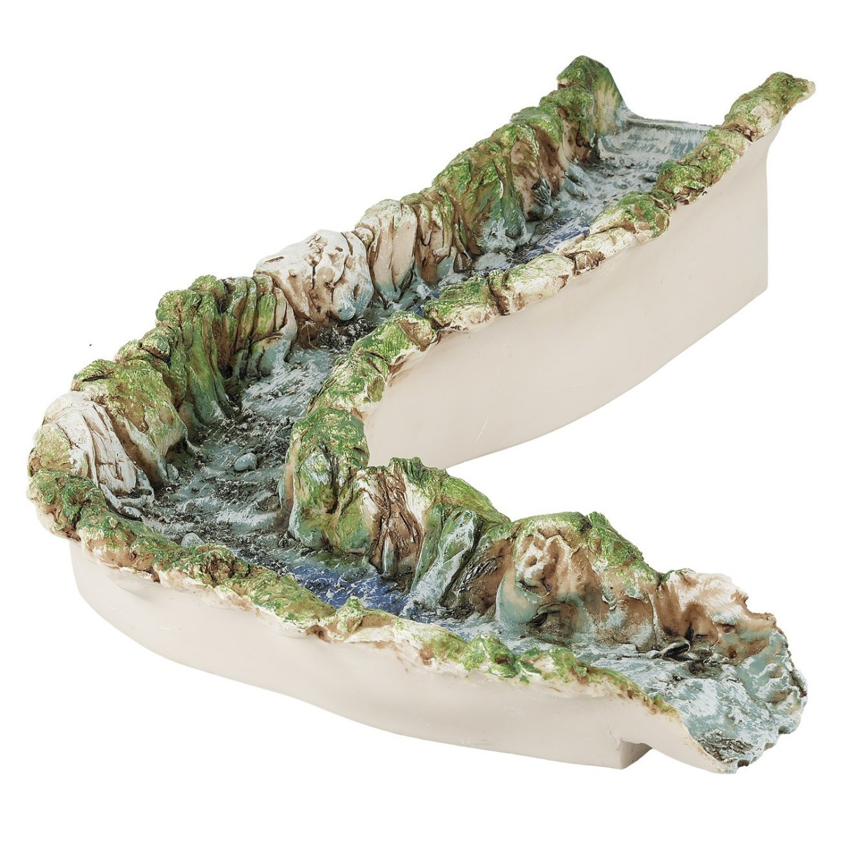 Río impermeable, de resina, con curva a la izquierda. Se recomienda su uso para la creación de cursos de agua hechos por uno mismo. El artículo ha sido realizado a mano por artesanos italianos. En los productos relacionados, a continuación, es posible encontrar todos los accesorios de la misma línea para completar la obra.