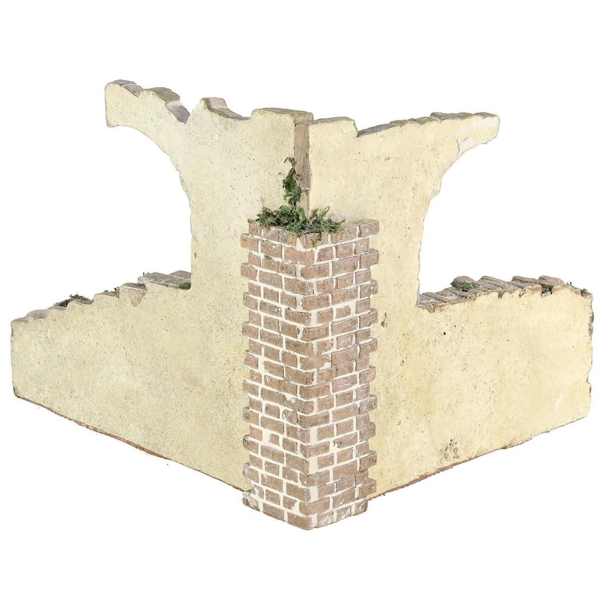 Escenografía para belén en resina caracterizada por piedras y ladrillos con juntas, las dos paredes en ángulo reproducen unos restos de arco. Este escenario es perfecto para recrear tanto escenas pascuales del Diorama como las del belén, como en las fotos puramente demostrativas. El artículo ha sido producido artesanalmente en Italia y es recomendado para figuritas de altura de 8 a 10 cm. En los productos relacionados debajo de la tabla están disponibles los códigos para las figuras presentes en las imágenes.
