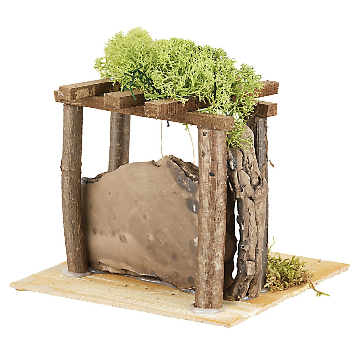 Portón caracterizado por una pérgola formada por vigas y troncos de madera adornada con un cubo que cuelga de ella. Recomendado para estatuas de 8 a 10 cm de altura que se pueden encontrar en los productos relacionados debajo de la tabla. El artículo está hecho de madera, corcho y musgo por artesanos italianos.