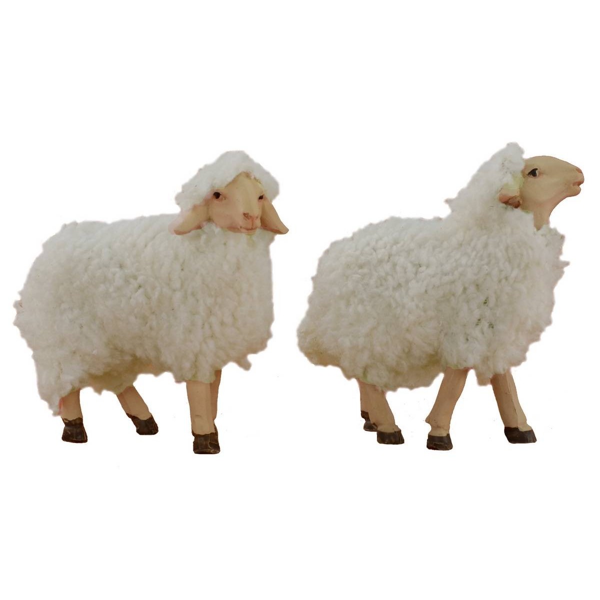 Set de 2 ovejas de resina con lana: una oveja mira hacia la izquierda mientras que la otra hacia la derecha. Recomendadas para estatuas de altura 14-15 cm.