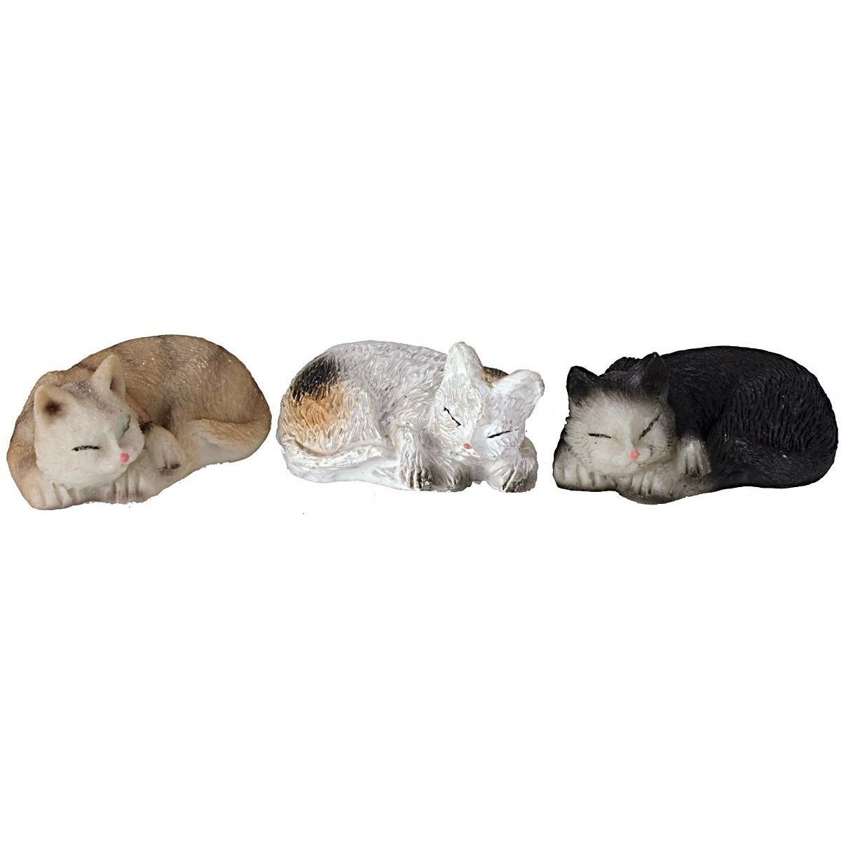 Conjunto de tres gatos acostados que descansan de resina en colores surtidos, recomendados para estatuas de altura 12 cm.