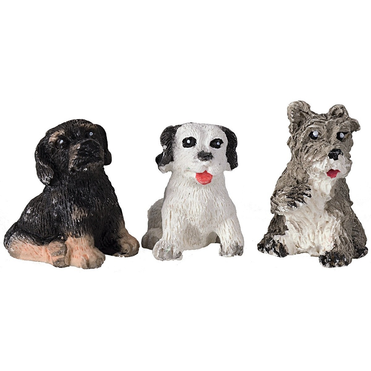 Conjunto de tres perros sentados de resina en colores surtidos, recomendados para estatuas de 12 cm de altura.