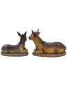 Buey y burro para estatuas pertenecientes a la serie de 20-30 cm. Las estatuas están bien acabadas en los detalles: están realizadas enteramente en resina y pintadas a mano por hábiles manos artesanas. Los rostros resultan muy expresivos y detallados en los particulares.