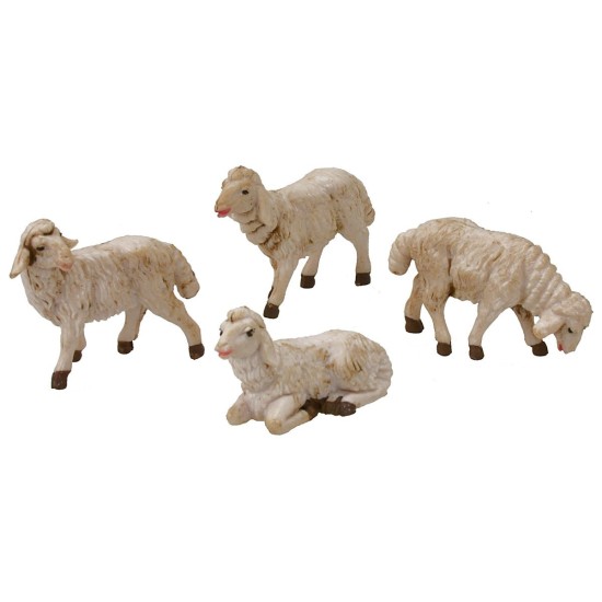 Set de 4 ovejas revestidas en PVC, recomendadas para estatuas de altura 12 cm.