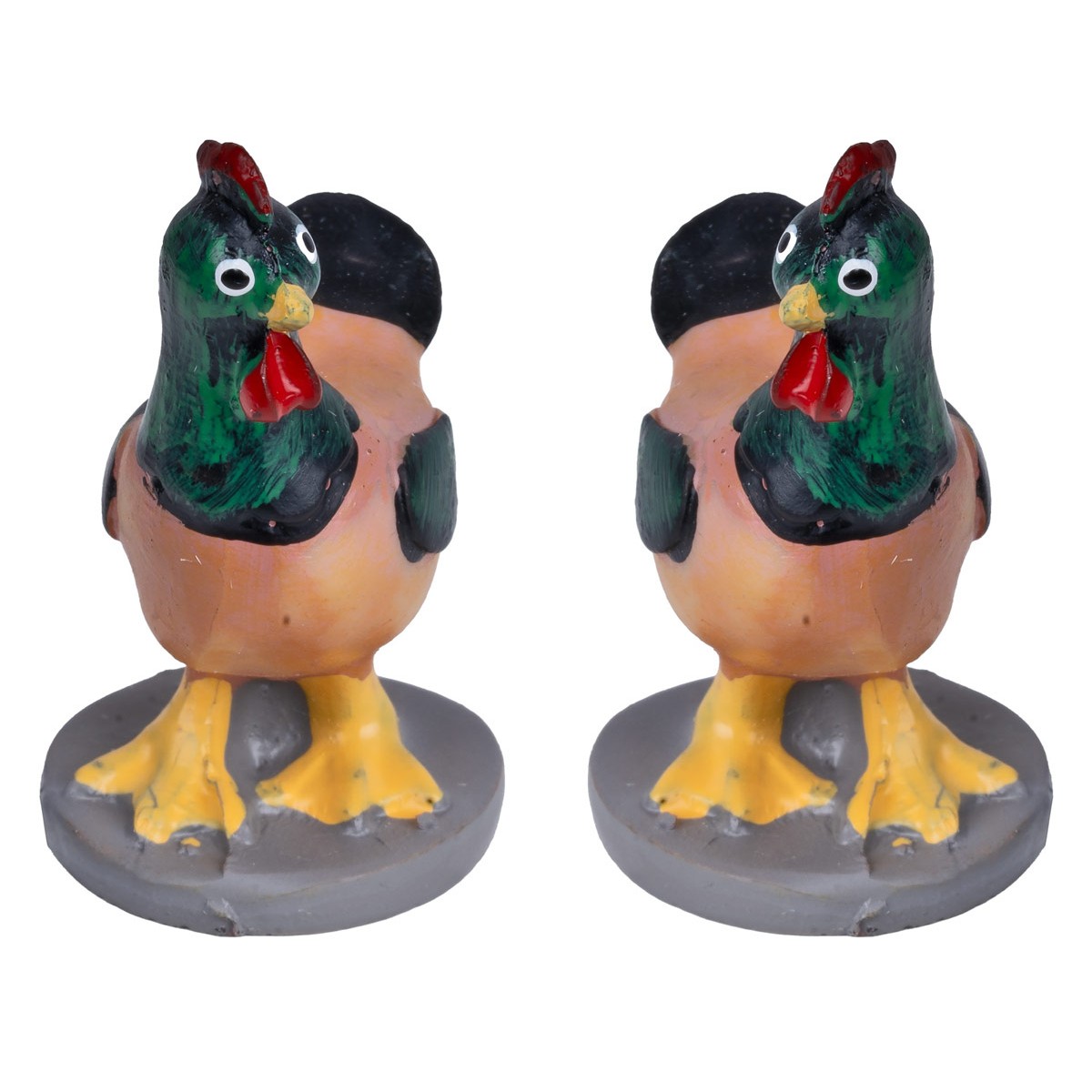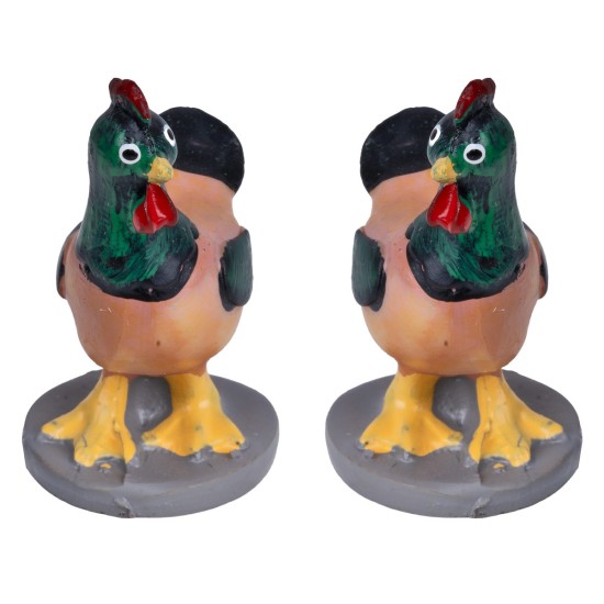 Set 2 gallinas. Tienen el cuerpo de color rosa tenue, los detalles de varios colores, principalmente un verde oscuro, cambian ligeramente la posición del cuerpo. Recomendadas para estatuas de altura 10 cm.