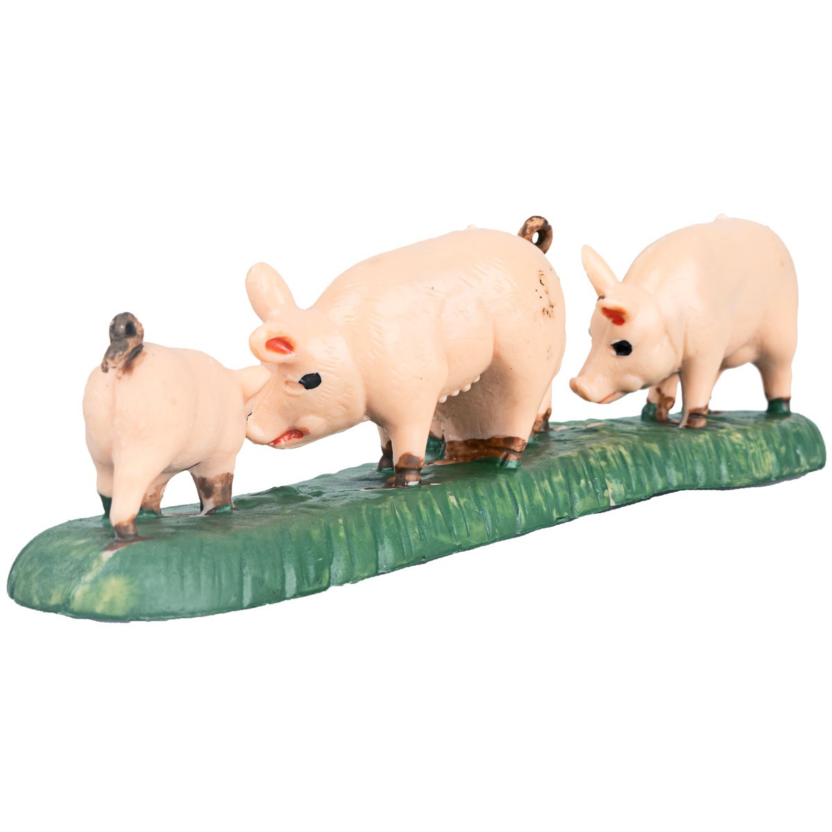 Grupo de 4 cerdos sobre base que simula el césped, en PVC adecuado para estatuas de altura 10 cm.