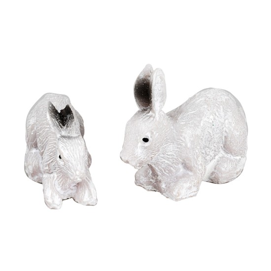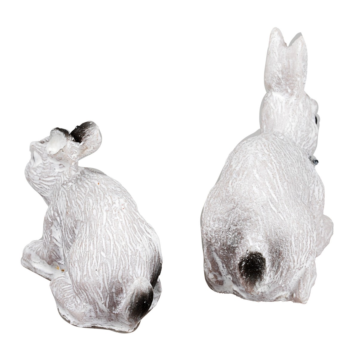 Set de 2 conejitos blancos de resina recomendados para figuritas de altura de 8 a 10 cm.