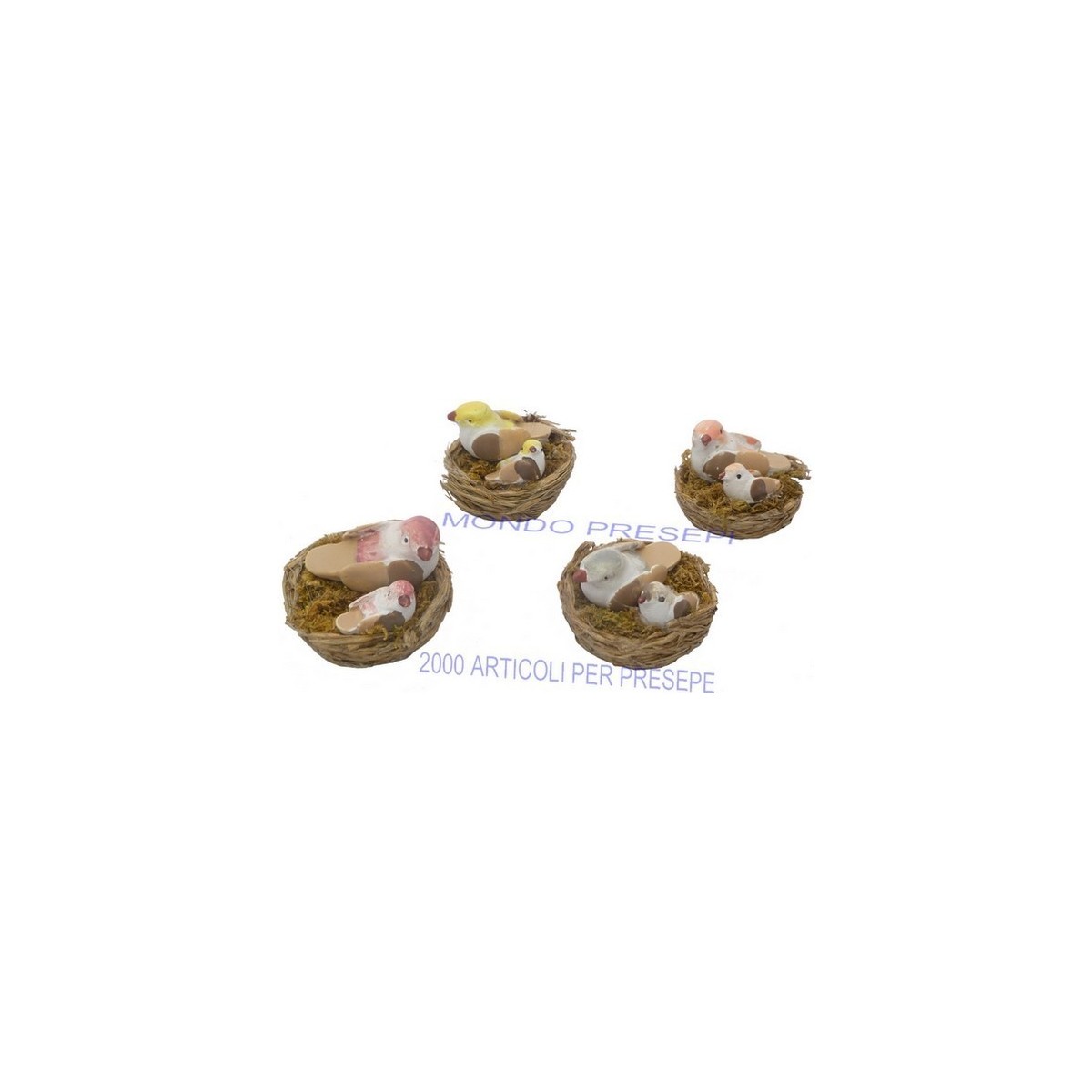 Nido con pajaritos, en colores surtidos.