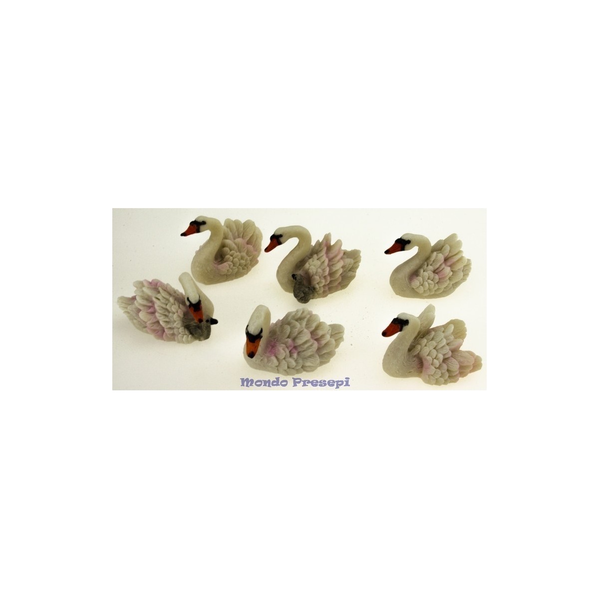 Cisne de resina bien acabado, disponible en varios modelos.