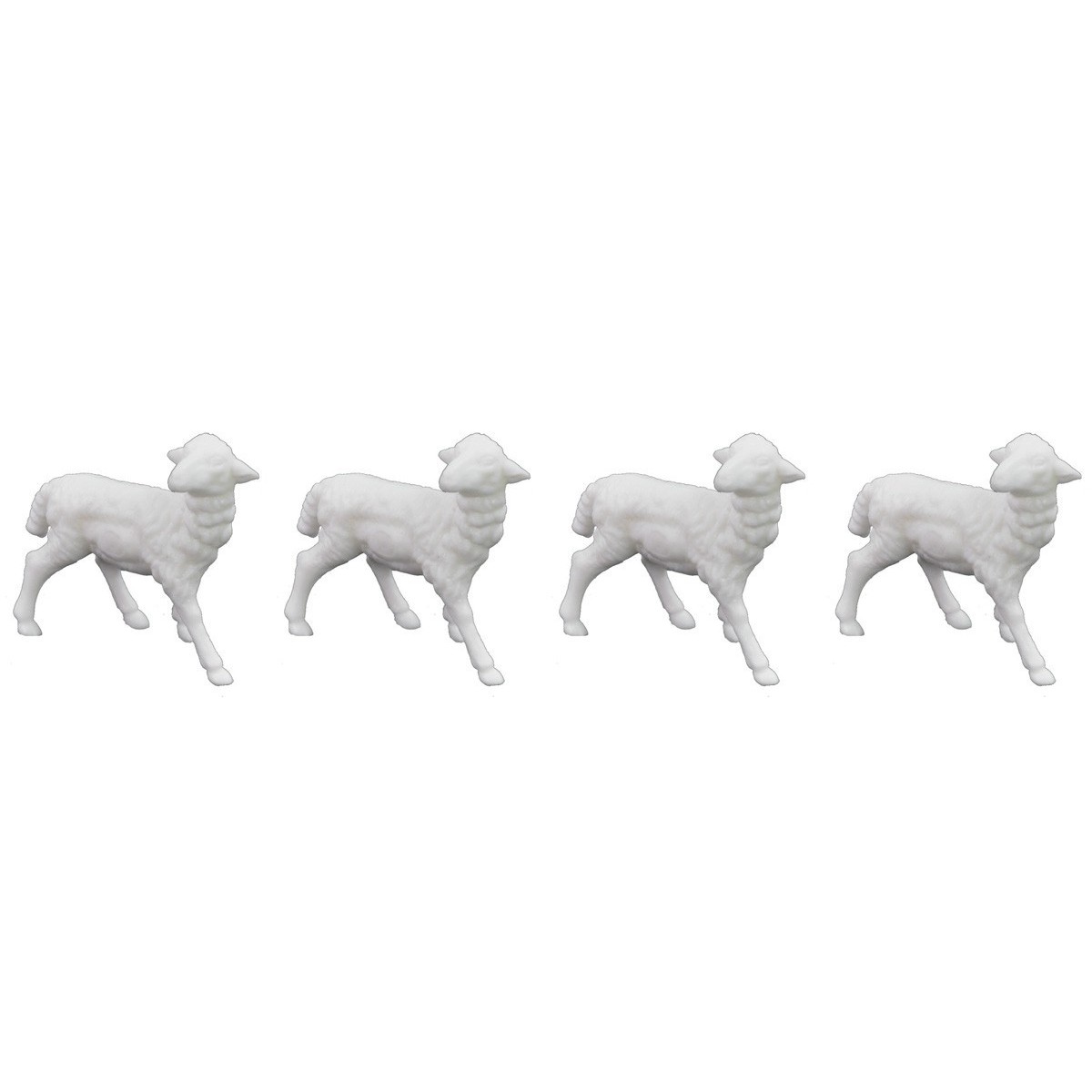 Set de 12 ovejas blancas en dos posiciones diferentes hechas de PVC recomendadas para estatuas de altura 6,5-8 cm.