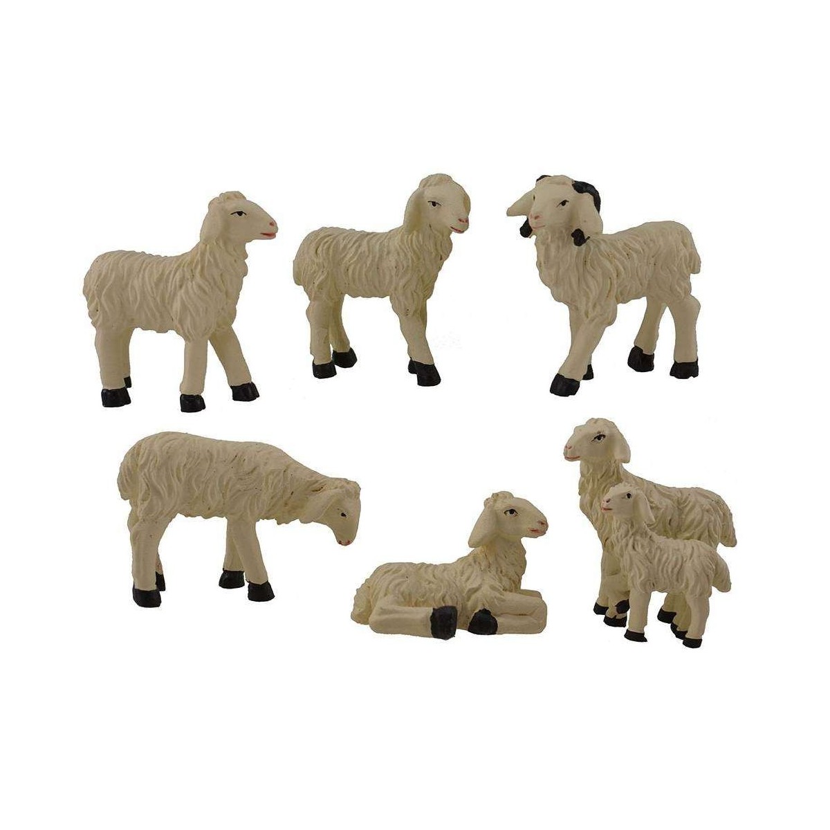 Set de 6 ovejas de resina bien acabadas, recomendadas para estatuas de 10 cm de altura.