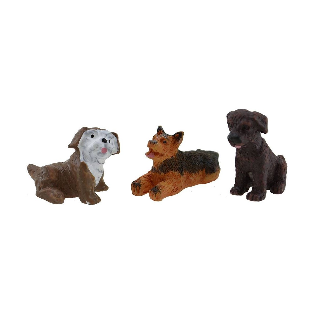 Conjunto de 3 perros en colores surtidos, pintados en resina, recomendados para estatuas de altura 8-10 cm. Los perros presentes en el conjunto son variados y pueden diferir de la foto.